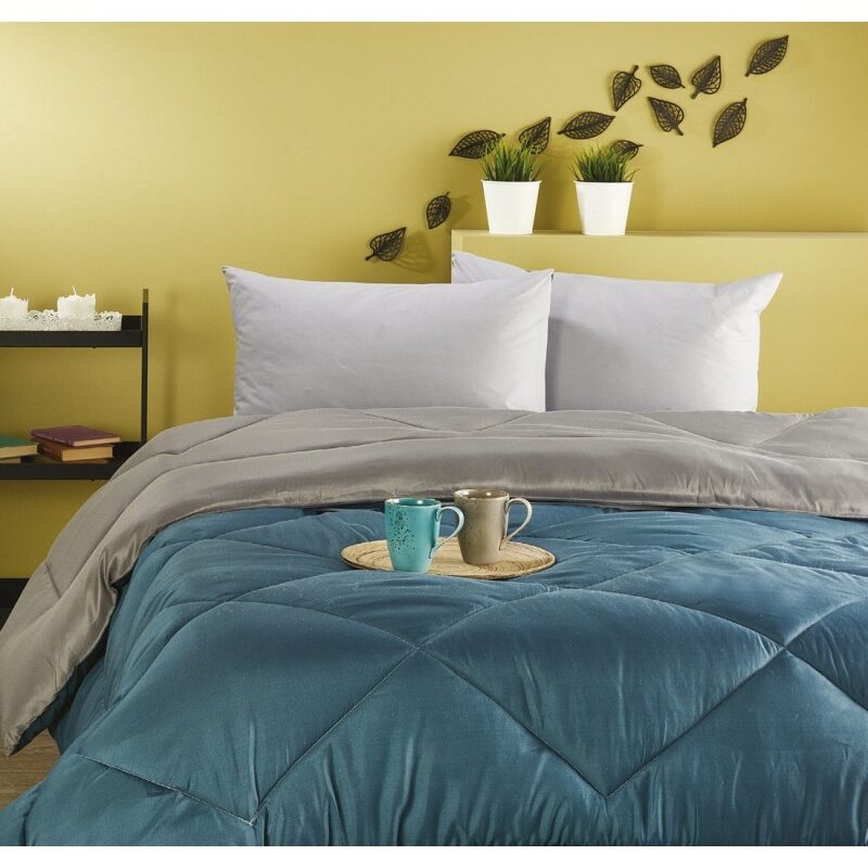 Πάπλωμα Διπλής Όψεως Ημίδιπλο ΠΑΠ 84/1 Petrol Microfiber White Egg (160×240)