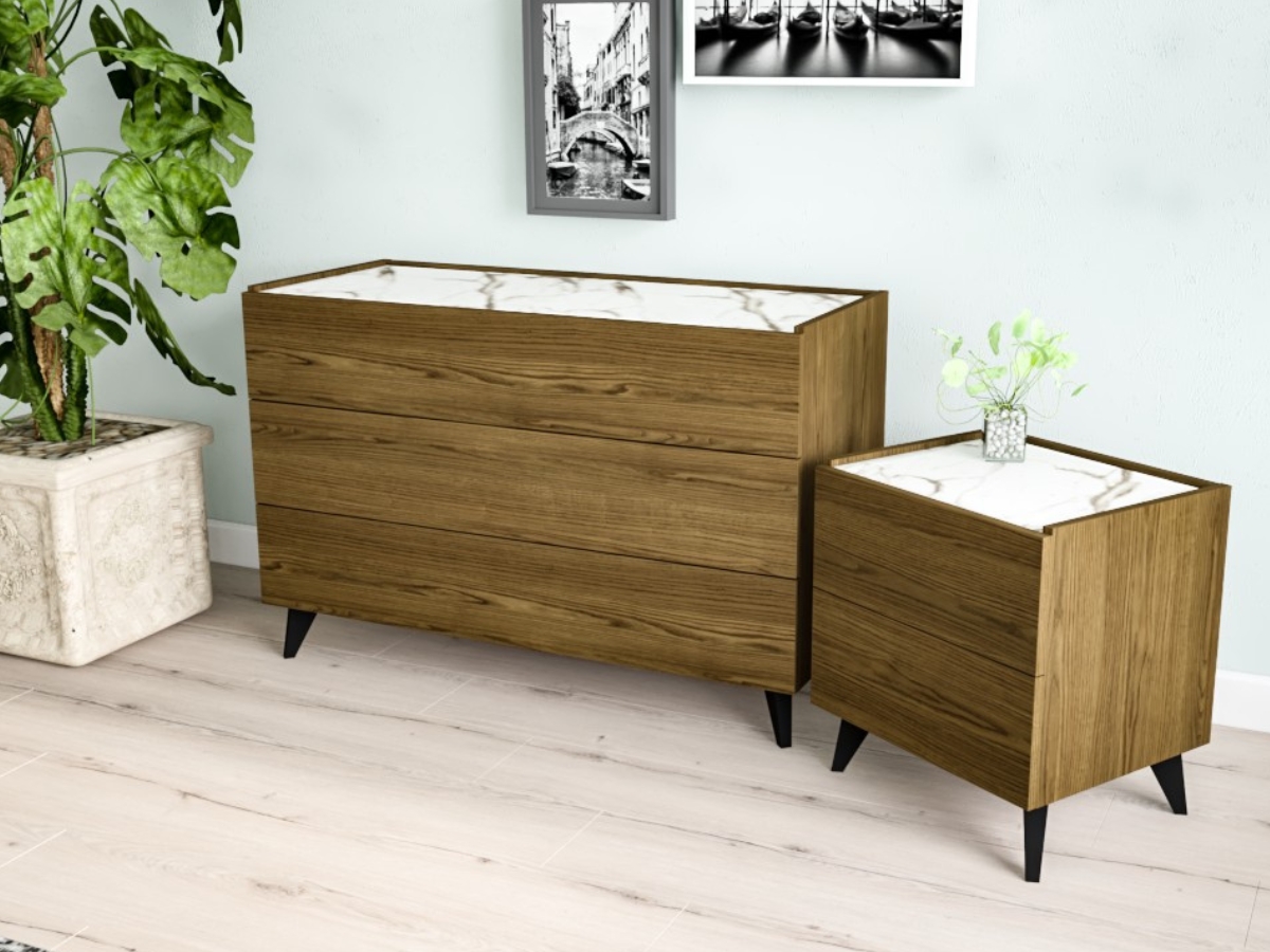 κομοδίνο VIRTUE. Διαθέτουν premium Γκρι εσωτερικό συρταριών και αθόρυβο τηλεσκοπικό μηχανισμό πλήρους επέκτασης. Μπορείτε να συνδυάσετε την απόχρωση του μαρμάρου Terra 2010 στο καπάκι ώστε να έχετε ένα εντυπωσιακό αποτέλεσμα.