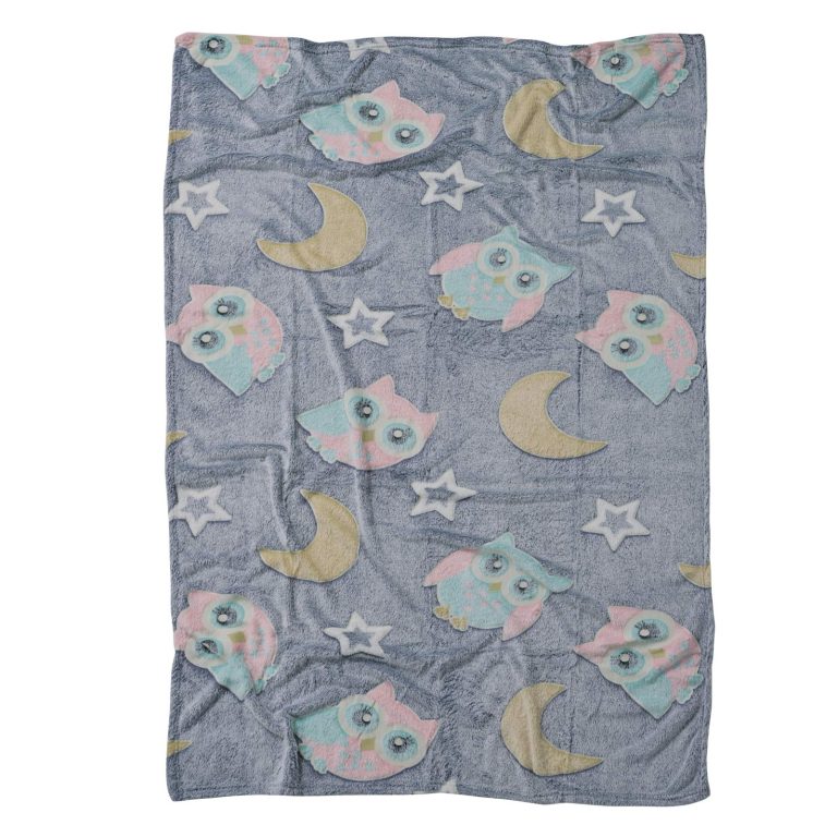Κουβέρτα fleece με ανάγλυφο τύπωμα που φωσφορίζει τη νύχτα, σε διάσταση 110Χ150εκ. Είναι υποαλλεργική, ιδιαίτερα απαλή, πολύ ζεστή, από 100% πολυεστέρα με βάρος 300gr/m². Das home, makes your house a home!