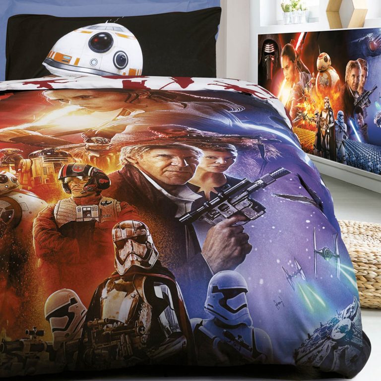 Σετ σεντόνια Starwars από υποαλλεργικό ύφασμα βαμβακερό. Απαλό στην αφή, ανθεκτικό στη χρήση και εύκολο στο σιδέρωμα. Το σετ περιλαμβάνει ένα πανωσέντονο 160Χ260, ένα κατωσέντονο 160Χ260cm & μία μαξιλαροθήκη 50x70cm. Σύνθεση: 100% Βαμβάκι . Πυκνότητα ύφανσης: 150 TC.